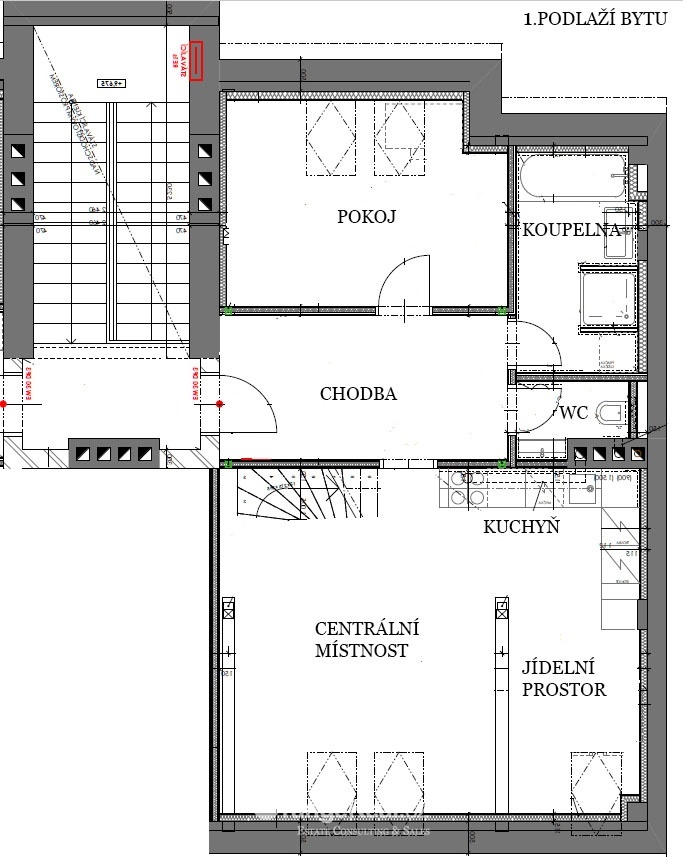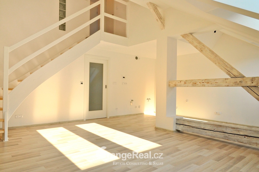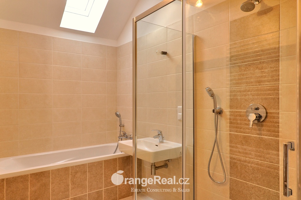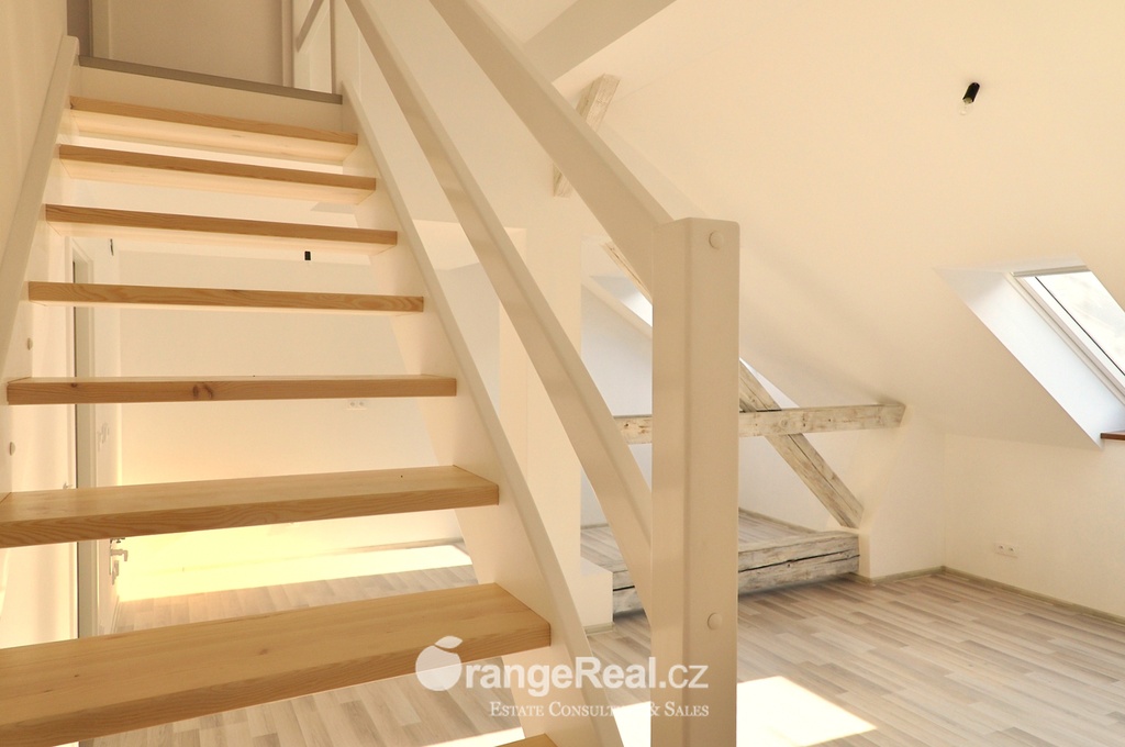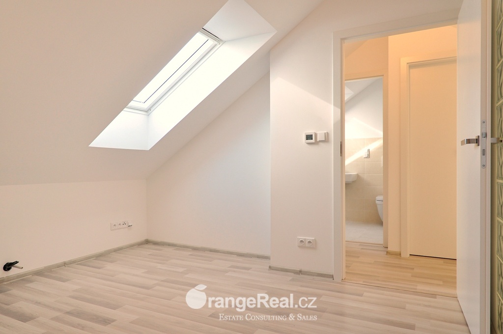 Výhradně nabízíme k prodeji novostavbu (energ. tř. B) nadstandardního mezonetového bytu dispozičně 3+kk, o ploše 101m2, v bonitní a vyhledávané lokalitě Pardubice – Náměstí Čs. Legií, umístěného ve III. patře zděného domu, pořízení výtahu v řešení SVJ. Byt zkolaudován, připraven k nastěhování (novostavba - kupující nehradí daň z nabytí). Byt sestává z prostorově velkorysé vstupní chodby, koupelny disponující vanou i sprchovým koutem, samostatné toalety, dvou samostatných neprůchozích pokojů, centrální místnosti, kde se nachází kuchyňské zázemí a jídelní a obývací prostor, z něhož vede schodiště do II. NP bytu. Zde je umístěn jeden z pokojů, koupelna s toaletou a 2x úložná komora. Byt je orientován na jih a sever. Při výstavbě byl kladen důraz na kvalitu použitých materiálů. Ohřev vody elektrickým kotlem se zásobníkem. Vytápění zajišťují podlahové elektrické rohože Fénix s možností regulace teploty v každé místnosti samostatně. Podlahové rohože jsou položeny po celé podlahové ploše bytu. Dveře Sapeli, okna Velux, obklady keramika, podlahy plovoucí, v koupelnách a na toaletách dlažba. V bytě je instalována kompletní příprava na osazení klimatizačních jednotek a EZS. K bytu dále přináleží sklep v I. PP domu a vlastní podíl na průchozí zahradě před domem. Dům je umístěn ve vnitrobloku, čímž majitelům tohoto bytu zajišťuje maximální soukromí, klid a bezpečí v kombinaci s bydlením v přímém centru města Pardubice. Za domem se nachází udržovaná společná zahrada o výměře 400m2. Dům je průběžně revitalizován – nová střecha 2017, nové rozvody vody a odpadů, nová vodovodní přípojka. Vzhledem k umístění bytu v samém centru města je veškerá občanská vybavenost – MŠ, ZŠ, VŠ, poliklinika, obchodní centrum AFI-Atrium, včetně vlak a BUS nádraží a zastávek MHD v docházkové vzdálenosti. Výborná dostupnost všech ostatních částí města, i nájezdu na D11. Parkování před domem na rezidenční karty. Doplňující informace u obchodníka společnosti. Doporučujeme navštívit virtuální prohlídku bytu na stránkách naší společnosti.