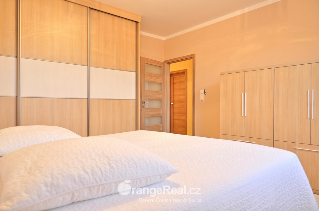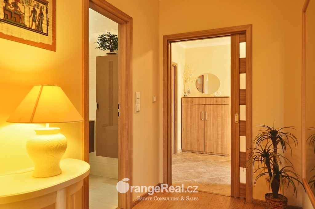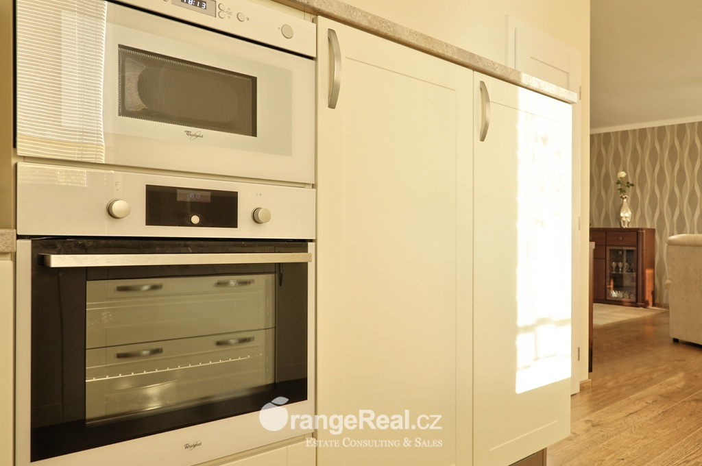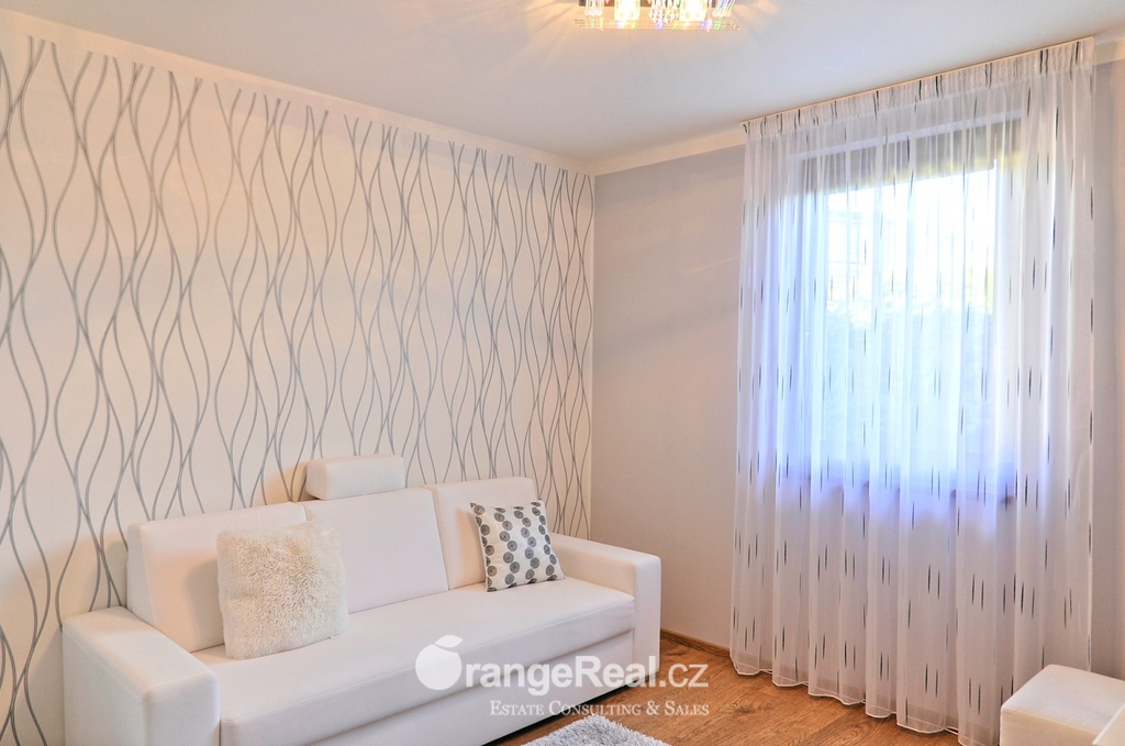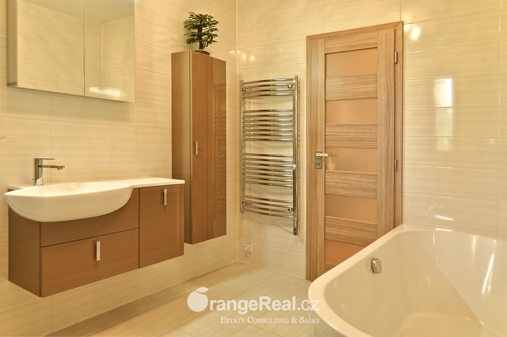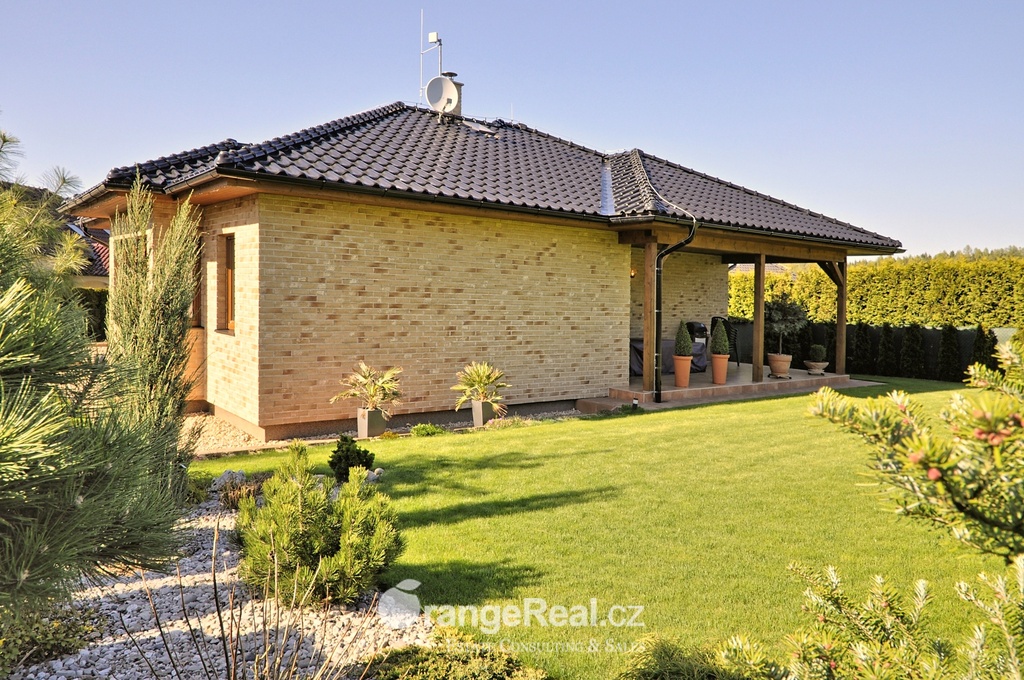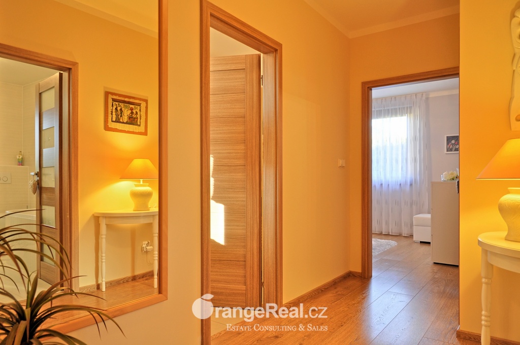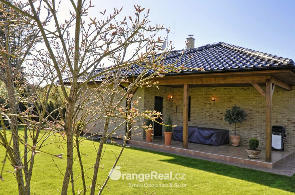 Výhradně nabízíme k prodeji luxusní novostavbu - rodinný dům v lokalitě Tehovec, Praha - Východ, z roku 2013, dispozičně 3+1, o obytné ploše 170m2 + garáž a terasa. Dům disponuje 3 obynými místnostmi, kuchyní, koupelnou, technickým zázemím, šatnou, terasou a garáží. Ze vstupní haly je přístup do šatny, na toaletu a do centrální obývací místnosti s krbem, propojené s kuchyňským zázemím a jídelním prostorem. Z centrální místnosti můžeme vstoupit na prostornou krytou terasu, orientovanou na jihovýchod. Ze vstupní haly dále pokračujeme do oddělené chodby, kde se nachází vstup do dalších 2 pokojů, koupelny s toaletou a technické místnosti s umístěnou pračkou, sušičkou a bojlerem na ohřev TUV. Teplo zajišťuje ele podlahové topení a sekundárně krbová vložka. Přes technickou místnost je přímý vstup do garáže. Při výstavbě byl kladem maximální důraz na kvalitu použitých materilálů. Dům byl zařízen s vybraným vkusem a citem pro detail. Podlahy plovoucí a dlažba. Okna plast 5 komor, trojskla. Okna osazena vnitřními žaluziemi a venkovními ele roletami. Stavebním materiálem jsou dřevopanely zatepleny 15cm polystyrenem. Celý dům je obložen cihlovými pásky Klinger. Složení zajišťuje maximální izolační vlastnosti. Náklad na výtápění domu a ohřev teplé vody =2.700,-Kč/měs. Pečlivě udržovaná okrasná zahrada, o rozloze 589m2, disponuje vlastním 30m vrtem zajišťujícím užitkovou vodu, která je rozvedena i v domě. Velmi nízké náklady na provoz domu. V obci lékař, MŠ, další občanská vybavenost 2km - Mukařov, 4km - Říčany. Výborné spojení do Prahy. Doplňující informace u obchodníka společnosti. Doporučujeme navštívit virtuální prohlídku na webových stránkách naší společnosti.