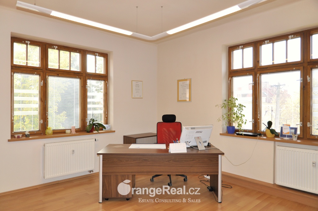 Nabízíme k prodeji prvorepublikovou zrekonstruovanou vilu, umístěnou v klidné čtvrti vyhledávané lokality Pardubice – Bílé Předměstí, o celkové užitné ploše 408m2, umístěná na pozemku o rozloze 818m2. Vila byla rekonstruována průběžně v letech 1996 až 2007 s důrazem na kvalitu stavebních materiálů. V I. a II. NP se nacházejí vždy 4 kanceláře, recepce, kuchyňka a toaleta. III. NP je koncipováno jako open-office s vlastní toaletou a kuchyňským zázemím a je plně klimatizované. V I. PP se nachází dvě místnosti, plně vybavené kuchyňské zázemí s jídelnou, toaleta a sprchový kout. Vytápění domu a ohřev vody zajišťuje plynový kotel, podlahové krytiny – keramická dlažba, plovoucí podlaha a koberce. Každé patro má vlastní měření elektrické energie. Na uzavřeném pozemku se nachází privátní parkoviště, vytvořeno 8 parkovacích míst. Tento vysoce kvalitní dům je vhodný pro reprezentativní sídlo firmy, popř. jako výhodná investice se solidním měsíčním výnosem, při pronájmu prostor. Nabízí se zde i možnost přebudování zpět na bydlení, i vícegenerační. V místě veškerá občanská vybavenost, ZŠ, MŠ, gymnázium, lékař, obchody, restaurace a další. Výborná dopravní dostupnost do centra města, které je i v pěší vzdálenosti. Doplňující informace u obchodníka společnosti. Doporučujeme navštívit virtuální prohlídku na web stránkách naší společnosti.